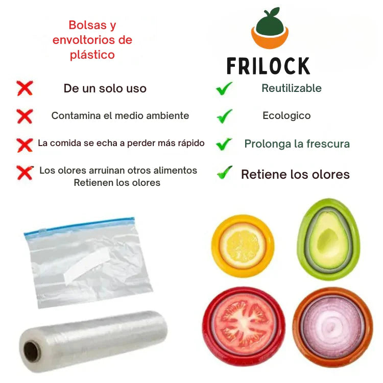 En la mayoría de los casos, sí. Frilock™ puede sustituir envoltorios desechables para frutas, verduras y sobras de alimentos, ayudándote a reducir significativamente el consumo de plásticos de un solo uso.