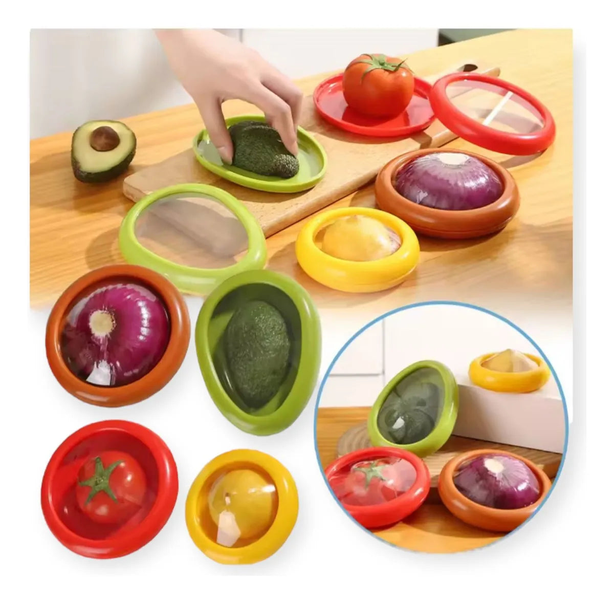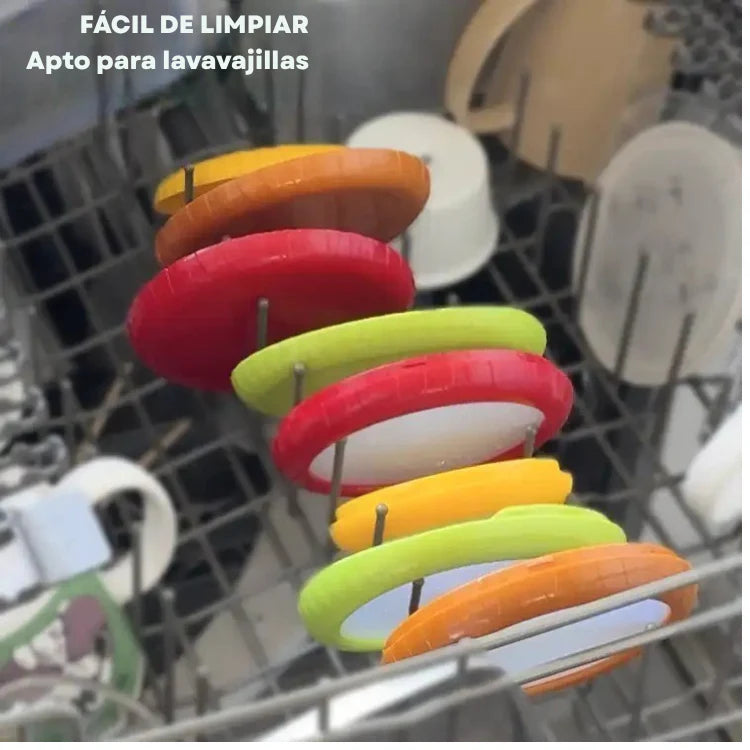 Frilock™ está diseñado con silicona flexible de alta calidad que se adapta a cualquier forma o tamaño de fruta, verdura o alimento. No importa si es medio aguacate, una cebolla, un tomate o incluso medio limón: el cierre se ajusta perfectamente, creando un sello hermético que mantiene la frescura y evita la entrada de aire.